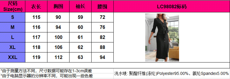 2024新款欧美跨境纯色翻领收腰系带气质开叉连衣长裙女