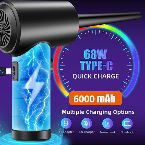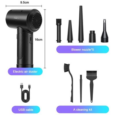Modern cutting-edge technology, this innovative duster provides a powerful burst of compressed air to effectively clean and prolong the lifespan of your electronic devices. Say goodbye to dust, dirt, and debris that can accumulate in hard-to-reach places, compromising the performance and longevity of your electronics. With its cordless design, you can enjoy hassle-free cleaning without being tethered to a power outlet. Simply charge the duster using the included USB cable, and you're ready to go. Its compact and portable size makes it ideal for use at home, in the office, or on the go. Not only does our Electric Compressed-Air Duster keep your electronics looking like new, but it also helps optimize their performance.