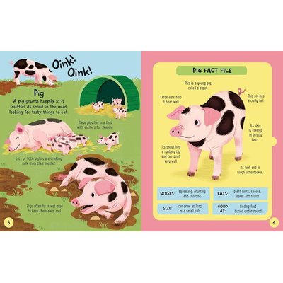This book is more than a book. Inside you'll find pre-cut pieces to pop out and slot together (following the simple instructions) to make five sturdy model farm animals. Underneath each set of pieces you'll find a bonus fact file with extra information about the featured farm animal. Slotting together the models helps with logic, following instructions and fine motor skills. Includes: sheep, pig, dog, calf, chicken.
