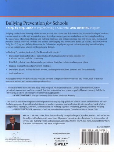 Bullying can be found in every school system, school, and classroom. It is destructive to the well-being of students, creates unsafe schools, and impacts learning. School personnel, parents, and others are increasingly realizing the importance of putting effective anti-bullying strategies and policies in place that will create safe, caring, and peaceful schools where all students feel a sense of belonging and acceptance. Based on Allan L. Beane's proven Bully Free7reg; Program, "Bullying Prevention for Schools" is a step-by-step guide to implementing an anti-bullying program in individual schools or throughout a district.