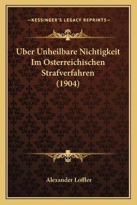 Uber Unheilbare Nichtigkeit Im Osterreichischen Strafverfahren (1904) (German, Paperback): Alexander Loffler