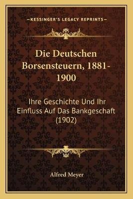 Die Deutschen Borsensteuern, 1881-1900 - Ihre Geschichte Und Ihr Einfluss Auf Das Bankgeschaft (1902) (German, Paperback)