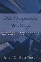 "The Companies We Keep" offers an original and provocative challenge to turn corporations into civic sites for democratic advancement. The whole notion of "governance" implies a public and accountable aspect to the dealings of corporations which recognizes continued wealth creation as well as greater popular participation.