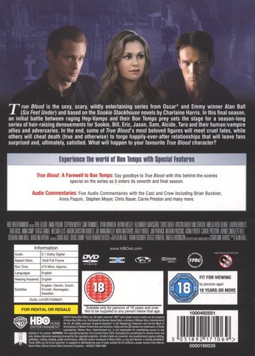 All ten episodes from the seventh and final season of the offbeat vampire drama adapted from Charlaine Harris's 'The Southern Vampire Mysteries' book series by writer Alan Ball. In this season, the vampire and human population of Bon Temps is in danger with the spread of the Hep V infection. Sookie (Anna Paquin) asks Bill (Stephen Moyer) to help her save the town but they soon have to face a shocking realisation.