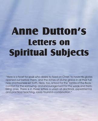 Anne Dutton's Letters on Spiritual Subjects includes seventy-nine letters form Anne Dutton the 18th century theological writer. Her literary legacy as a Calvinistic Baptist is extremely significant due to the rarity of women writers at this time. Dutton brings to life subjects form; His sovereign love , The New Birth, and Of Refuges for Sinners to Jesus your Friend, Indwelling Sin, That eternal feast and more. Anne Dutton's Letters on Spiritual Subjects is a true gem for the Christian reader.
