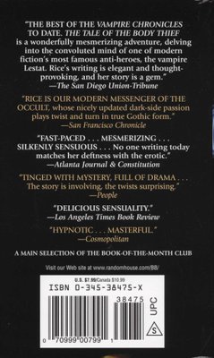 "A wonderfully mesmerizing adventure, delving into the convoluted mind of one of modern fiction's most famous anti-heroes, the vampire Lestat. Rice's writing is elegant and thought-provoking and her story is a gem."