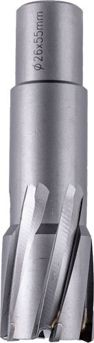 Size: The cutter has a 26mm outer diameter and a cutting depth of 55mm, providing versatility for drilling moderate-sized holes with deeper penetration in various metalworking applications.