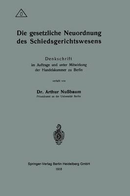 Die Gesetzliche Neuordnung Des Schiedsgerichtswesens - Denkschrift Im Auftrage Und Unter Mitwirkung Der Handelskammer Zu Berlin (German, Paperback, 1918 ed.)