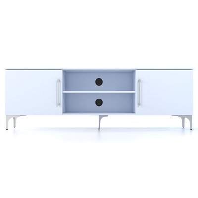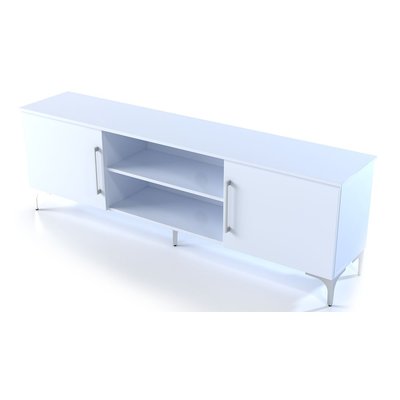 We don t like to boast much, but this TV stand screams modernism, from its sleek finish down to its Chrome foot pieces, it will easily be the focal point in any room it s placed in. Contemporary in its design and finished with quality chrome door handles. With more than sufficient space to display a TV as well as having six shelves in total, two behind doors it provides more than enough storage space. It also offers a quick and easy cable management system with its back cut out holes.