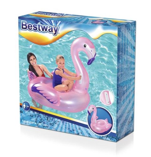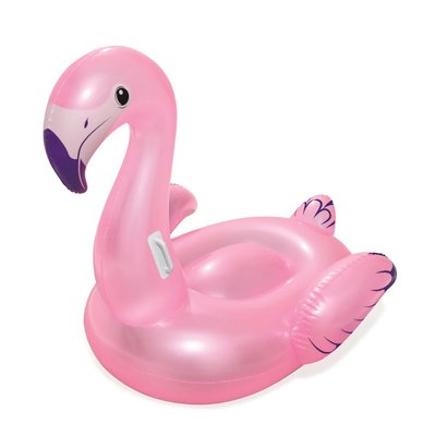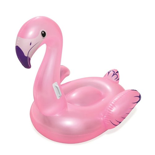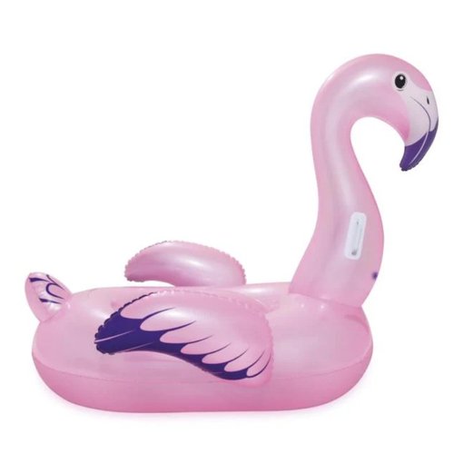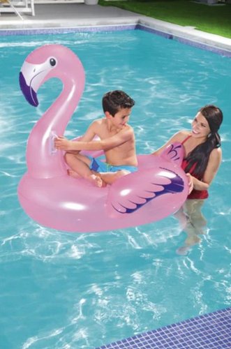 The H2OGO!® Luxury Flamingo is an inflatable ride-on with personality and pizzazz. This awesome ride-on has a huge surface area for sitting, lounging and posing. The long elegant flamingo neck is complete with firm heavy duty handles for gripping as you wade through the water or carry this fancy bird across the warm sand. Take this elegant bird in the water and enjoy being the center of attention. This ride-on is constructed to be buoyant and beautiful as it floats under the sun. It inflates and deflates with ease, making storage easier than ever. The purple glitter printed highlights on this flamingo round out the appealing features of this perfectly pink float. Let this pool accessory set the stage for every party and family gathering. This flamingo ride-on is festive, fashionable and fun! Allow the H2OGO! Luxury Flamingo to ignite your summer and fill your days with leisure and fun!