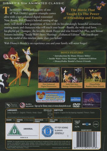 Based on the classic novel by Felix Salten, director David Hand adds a mixture of great songs and life-like backgrounds to make this early Disney film an unforgettable film classic for all ages.