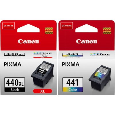 Original Canon PG-441XL Black and CL-441 Tri Colour Ink Cartridge. Page yield: 550 (Black) 220 pages (Colour), Printing colours: Black, Cyan, Magenta, Yellow, Quantity per pack: 2 piece. Compatible with Canon PIXMA MG2140, MG3140, MG4140, MX374, MX434, and MX514 printers.