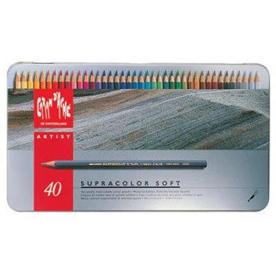 Caran d Ache : Supracolor Soft : Watersoluble Artists Colour Pencil Set of 40 in metal tin