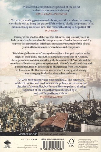 'If Downton Abbey still colours your impression of what Britain was like on the cusp of the First World War, 1913 could be a useful corrective' Scotsman 2018 marks the centenary of the end of the Great War. What was the year before the war really like? 1913 is usually seen as little more than the antechamber to apocalypse. Our images of the times are too often dominated by last summers of upper-class indulgence or by a world rushing headlong into the abyss of an inevitable war. 1913: The World before the Great War proposes a strikingly different portrait: told through the stories of twenty-three cities - Europe's capitals at the height of their global reach, the emerging metropolises of America, the imperial cities of Asia and Africa, the boomtowns of Australia and the Americas - Charles Emmerson presents a panoramic view of a world crackling with possibilities, from St Petersburg to Shanghai and from Los Angeles to Jerusalem. What emerges is a rich and complex world, more familiar than we expect, connected as never before, on the threshold of events which would change the course of global history. 'A masterful, comprehensive portrait of the world at that last moment in its history...' Spectator