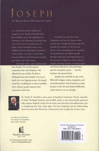 No family today is more dysfunctional than Joseph's was. No one faces greater temptation than that which Potiphar's wife offered Joseph. No faith is challenged more severely than was Joseph's on death row. Yet Joseph stood firm, exemplifying what is possible when ordinary people maintain their connections with God. Like an epic novel filled with intrigue, tension, and torrential emotions, Joseph's triumphiant story touches us all." Great Lives: Joseph "presents a fresh look at one of the most intriguing characters in the Old Testament and focuses on the virtue of forgiveness in the face of deceit and betrayal.