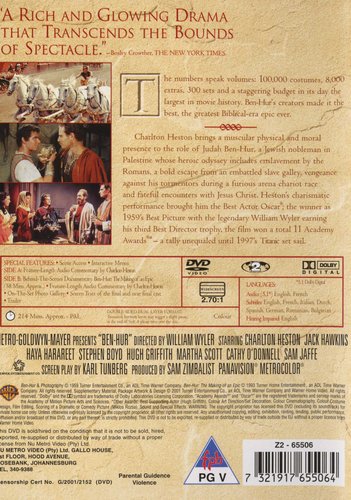 - Side B: Behind-the-Scenes Commentary Ben-Hur: The Making of an Epic (58 Mins Approx)