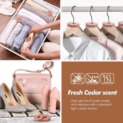 Protect your favorite clothes from moths with Chenshia premium aromatic red cedar rings. Simply hang these rings in your closet, place the cedar balls in pockets, or add the cedar chips to drawers and storage bags. They provide comprehensive protection for your garments from all angles.