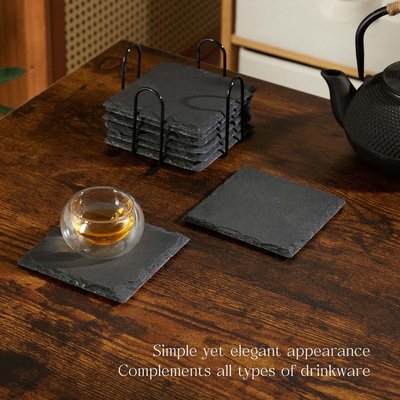 The iron stand offers adequate load-bearing capacity and rust resistance, serving to hold and store the coasters for convenient access and organisation.