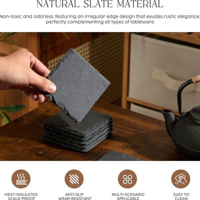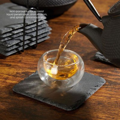 Material: The coaster is crafted from natural black slate, a material renowned for its excellent wear resistance, heat tolerance, and waterproof properties. It effectively safeguards tabletops from damage caused by hot beverages, alcoholic drinks, and similar liquids. The unique natural grain of the stone slab lends a rustic, earthy charm to any home setting.