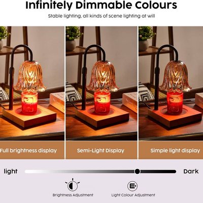 Dimmable and Timer: The Chenshia candle warmer lamp controls the brightness and heat release to match different scent concentrations and candle lifetimes. The timer function allows you to sleep with peace of mind. You can choose from 2H/4H/8H timer settings, as well as four different dimming options, allowing you to adjust the light's brightness for various occasions and moods.