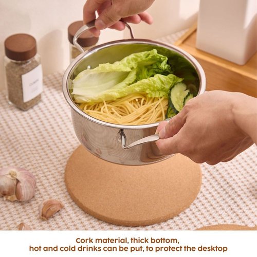 Made with smooth edges, extra thick to 0.4 inches (1 cm), our trivets offer effective heat insulation. The 8-inch (20 cm) diameter is perfect for placing dishes, pots, pans, and plants