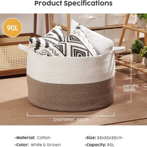 Multipurpose Storage Baskets: The 90L capacity basket can keep things organised in a stylish and decorative way. You can use them to store extra towels, blankets, clothing, toys for baby and dogs, books, pillows or any other household items around the house, anything you can imagine