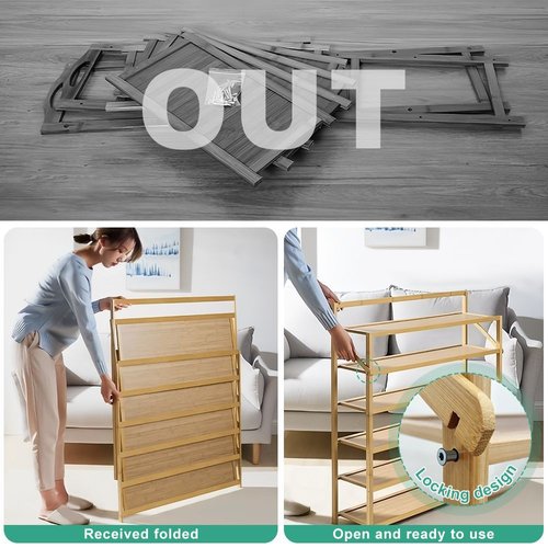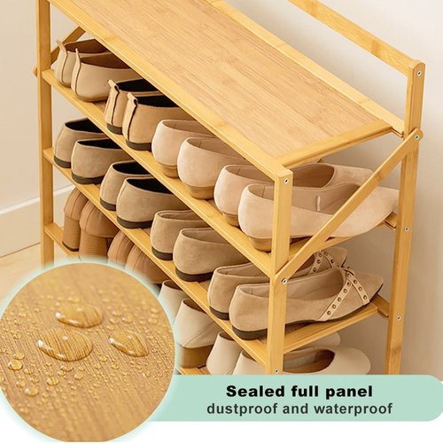 Made of bamboo with eco-friendly paint treatment, the shoe rack is light & moisture-proof.
