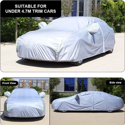 Our Chenshia car cover is made of thickened Oxford cloth, which is highly waterproof, and the inner layer is made of spun lace cotton wool, which is heat-insulated and cold-proof, providing all-around protection for your car. The driver's side door has a zipper for easy access to the car without removing the cover. There are also night reflective strips on the surface of the car. The outline of the car can be easily seen. The elastic edge of the cover fits your car nicely. The lower strap + windproof strap double fixation keeps your car in place even on windy days. Exquisite double stitching technology makes the car cover more durable; the car cover has a lock to better protect your car.