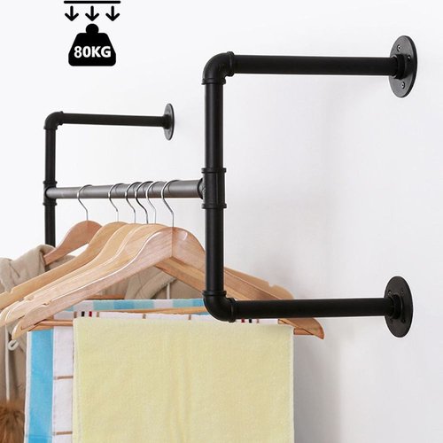 Durable & Strong: Chenshia's industrial pipe wall-mounted hanger rack features robust cast iron pipes that are rust-proof and resistant to bending. With sturdy four-hole flanges, this rack supports up to 80KG of weight, making it a reliable choice for both indoor and outdoor use. This clothing rack is designed to meet your daily storage needs effortlessly.