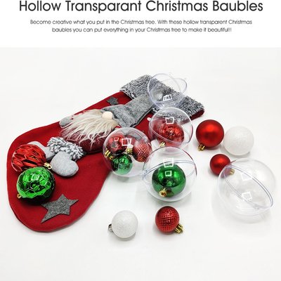Set of 5: Each package includes five clear Christmas balls for a consistent and cohesive holiday decor. Timeless Charm: These transparent baubles offer classic style that complements any Christmas tree theme or decorating style.