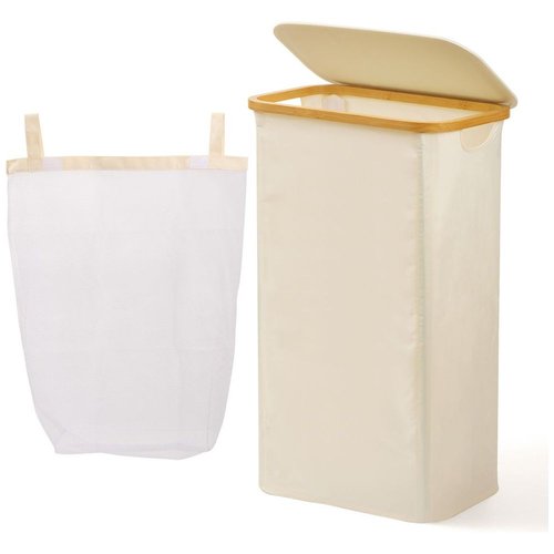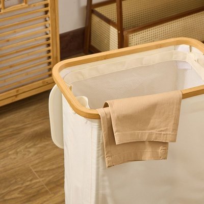 Made of high-quality polyester fabric and bamboo, this laundry bin is lightweight and easy to carry. Two bamboo handles provide firm and steady grip when moving from one room to another.