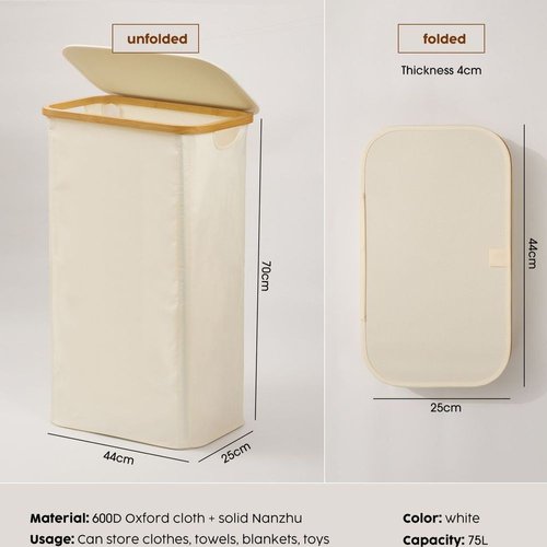 Our clothes hamper with lid is designed with easy assembly in mind. Just insert 4 included support rods into the corners and the basket will stand upright. Likewise, remove the poles when not in use and fold for easy storage.