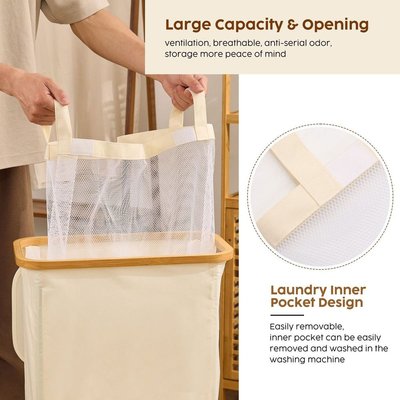 Secured on all sides by 4 velcro, this dirty clothes hamper has a removable inner bag for easy carry and separation from the inner basket. The clothes basket's cover design prevents the spread of odors and provides you with a tidy environment.