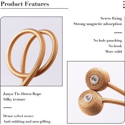 Good quality curtain tiebacks. Tiebacks without attaching to the walls, no hooks required. A simple design ideal for your sitting room, living room, bathroom, bedroom, nursery, etc. Easy to use and store without damaging your walls, just clip on the curtain when you don't use them, decorative and easy to find