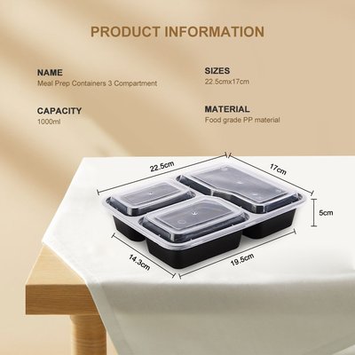 - quantity: set of 10 meal prep containers with 3 compartments and 10 lids