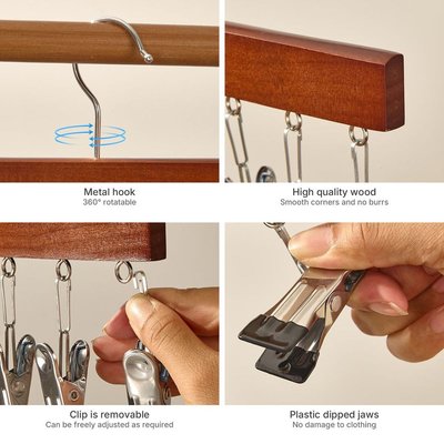 Anti-Slip & Traceless Clips Equipped with stainless steel clips featuring rubber-coated edges, these wood pants hangers provide a strong grip without leaving marks on your clothes. We have specially adjusted the tightness of the clips for easier use, ensuring your garments stay securely in place.
