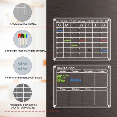 Stay organized in style with the Chenshia Reusable Monthly & Weekly Calendar, designed for effortless planning and a sleek look in your kitchen. Equipped with strong magnets, this calendar easily sticks to any metal surface, like your fridge or a magnetic board, putting your schedule right where you need it. The elegant acrylic design elevates your space, seamlessly blending practicality with sophistication.