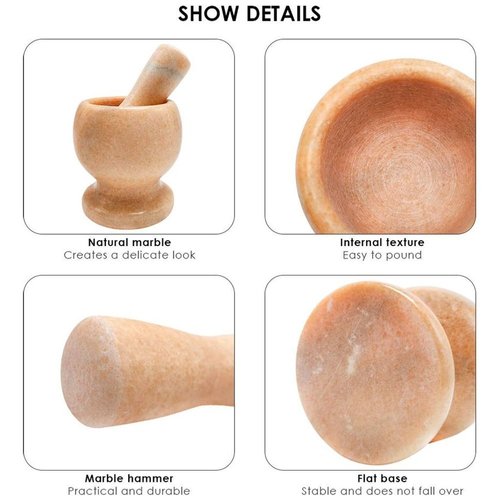 This strong and durable Marble Mortar and Pestle allows you to release the flavors and oils in freshly ground spices which makes a big difference in the taste of the food. This Chenshia Pestle and Mortar is made from high quality marble, this set will stay put as you grind those aromatic spices, mixed grains, herbs, nuts, garlic and vegetables. The heavy marble will offer you a lifetime of use.