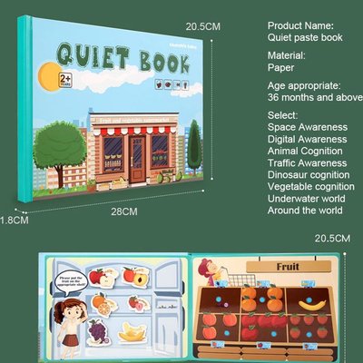 High-Quality Materials: a versatile quiet book can be reused and bring endless fun. The cardboard is thickened, and the surface is covered with film, which is waterproof and not easy to tear. The size is suitable for small hands to grasp, and children will enhance their sense of touch when pasting books repeatedly. The quiet book has bright colored pictures to help children better understand their surroundings. This book can let children play quietly for hours and give you some quiet time It can also be a perfect gift for preschool children.