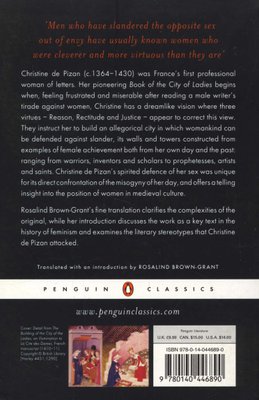 A key text in the history of feminism, the City of Ladies not only provides powerful positive images of women, ranging from warriors, inventors and scholars to prophetesses, artists and saints, but also offers a fascinating insight into the debates and controversies about the position of women in medieval culture. In her Introduction to this new translation for Penguin Classics, Rosalind Brown-Grant sets the work within its historical and intellectual context.