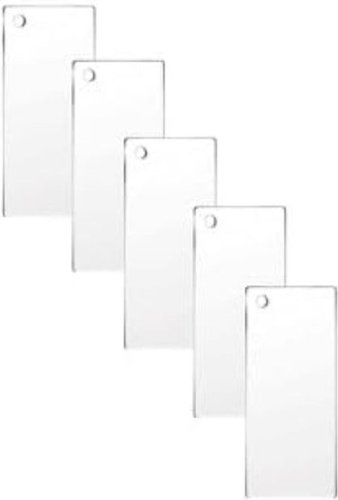 Clear Acrylic rectangles Length - 6cm x Width - 2cm with have a small hole. perfect to use with your Cricut for vinyl application or for resin application to create personalised or custom keyrings and ornaments. available in packs of 5, 10, and 20