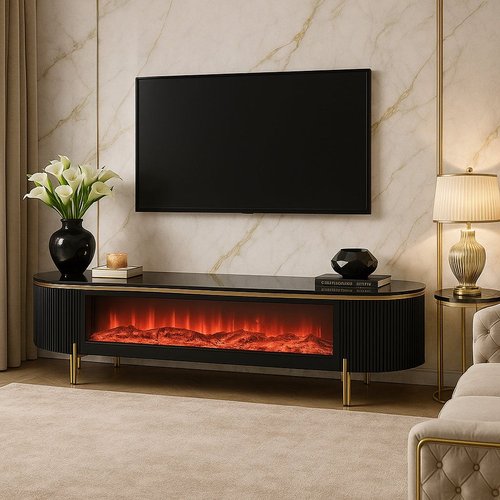 The Cornelia Prestige Fireplace Plasma Stand is a statement piece that blends luxurious style with practical design. Featuring a sleek black finish accented by refined gold trim and detailing, it brings a modern, high-end touch to any living space. The integrated electric fireplace adds warmth and ambience, creating a cosy yet sophisticated atmosphere. Supported by slim gold-finished legs, the design remains elegant while providing sturdy stability. With its generous surface and functional storage, the Cornelia Prestige Fireplace Plasma Stand is perfect for showcasing your television and keeping your entertainment area organized.