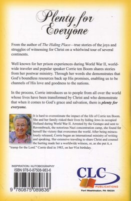 Well known for her prison experiences during World War II, worldwide traveler and popular speaker Corrie ten Boom shares stories from her postwar ministry. Through her words she demonstrates that God's boundless resources back up His promises, enabling us to be channels of His love and goodness to the nations.