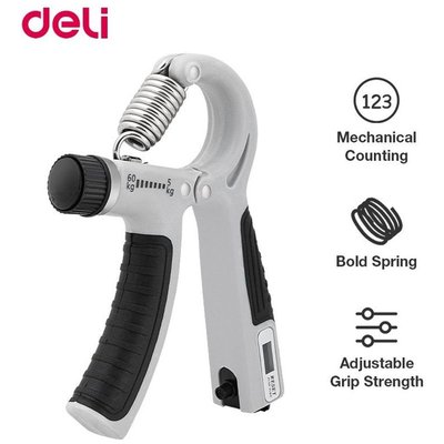 The Deli Counting Grip Strength Device (5-60kg) is a compact and adjustable hand exerciser designed to improve grip strength, endurance, and muscle tone. With a resistance range of 5 to 60 kilograms, it caters to users of all fitness levels-from beginners to athletes. The built-in digital counter automatically records the number of grips, helping you easily track progress without manual counting. Its ergonomic, non-slip handle ensures a secure and comfortable grip during workouts, making it perfect for rehabilitation, strength training, or stress relief. Lightweight and portable, it's ideal for home, office, or on-the-go use.