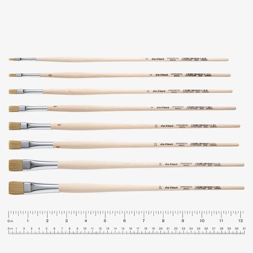 Da Vinci Synthetic Bristle Brushes have been developed as a modern and vegan synthetic alternative to traditional hog bristle brushes. Suitable for use with oil and acrylic, the hairs are made of robust and flexible fibres which maintain their shape, even under heavy use. They are also easier to clean than conventional bristle brushes.