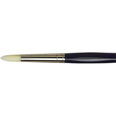 Extra strong white synthetic bristles, short length.So-called silver ferrule.Long blue polished esagonal handles.International sizes No. 1 to No. 12.