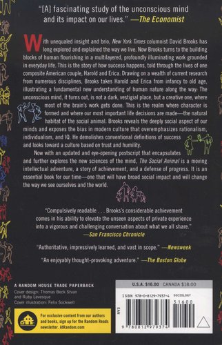 With unequaled insight and brio, New York Times columnist David Brooks has long explored and explained the way we live. Now Brooks turns to the building blocks of human flourishing in a multilayered, profoundly illuminating work grounded in everyday life. This is the story of how success happens, told through the lives of one composite American couple, Harold and Erica. Drawing on a wealth of current research from numerous disciplines, Brooks takes Harold and Erica from infancy to old age, illustrating a fundamental new understanding of human nature along the way: The unconscious mind, it turns out, is not a dark, vestigial place, but a creative one, where most of the brain's work gets done. This is the realm where character is formed and where our most important life decisions are made-the natural habitat of The Social Animal. Brooks reveals the deeply social aspect of our minds and exposes the bias in modern culture that overemphasizes rationalism, individualism, and IQ. He demolishes conventional definitions of success and looks toward a culture based on trust and humility. The Social Animal is a moving intellectual adventure, a story of achievement and a defense of progress. It is an essential book for our time-one that will have broad social impact and will change the way we see ourselves and the world.