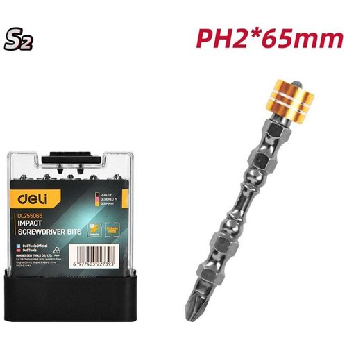 The Deli PH2 x 65mm Magnetic Ring Bits are precision-engineered for superior performance in professional and DIY screwdriving tasks. Made from high-quality S2 steel, these bits offer excellent hardness, wear resistance, and durability, ensuring a long service life even with frequent use. Each bit is equipped with a strong magnetic ring, allowing for secure screw retention and easy, efficient one-handed operation-perfect for working in tight or overhead spaces. The PH2 cross-head design is compatible with most electric and manual screwdrivers, making it a versatile choice for furniture assembly, appliance repair, and construction tasks.