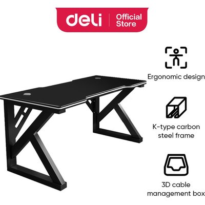 The Deli Ergonomic Gaming Table is designed to elevate your gaming and work experience with a sleek, minimalist black finish and a spacious desktop measuring 120 x 60cm. Its sturdy steel frame and reinforced Z-shaped legs provide excellent stability, while the ergonomic curved front edge ensures optimal comfort during long sessions. The surface is scratch-resistant and easy to clean, ideal for both gaming gear and office essentials. Whether you're a pro gamer or a remote worker, this table combines modern style with robust functionality to meet all your performance needs.