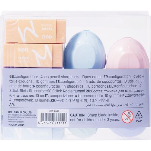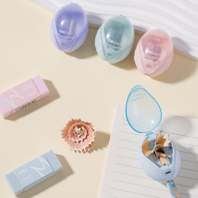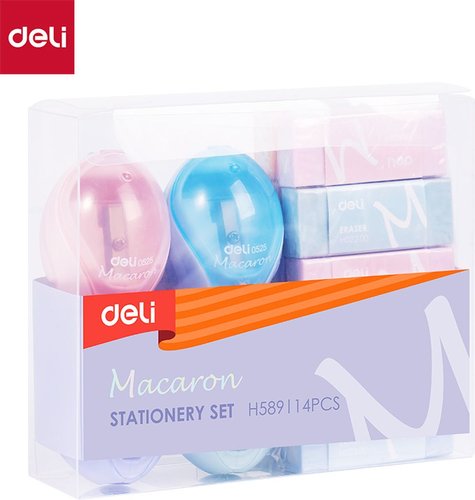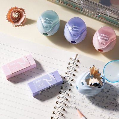 The Deli Macaron Stationery Set (14 Pieces) is a delightful and functional collection designed to brighten up your workspace or school supplies. Featuring soft pastel hues reminiscent of macarons, this set combines aesthetic appeal with practicality. The included electric eraser not only ensures precise and effortless erasing but also doubles as a mini fan, providing a refreshing breeze during study sessions. Its non-toxic, synthetic rubber construction guarantees safety and durability, making it suitable for users of all ages. The compact and lightweight design of each item ensures easy portability, perfect for on-the-go use.